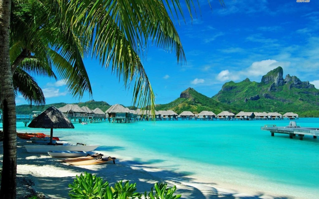 Bora Bora is a small island in the archipelago of the Society Islands in French Polynesia, surrounded by a lagoon and a reef. At its center is a frozen volcano. Its highest point is 727 meters and its area is 29 square kilometers